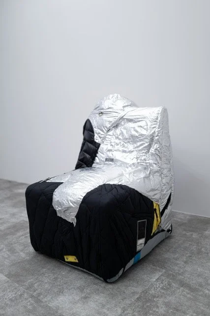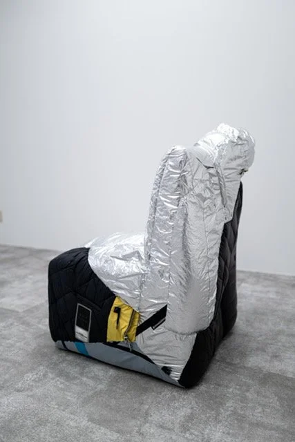 椅子に変えられた人間と言うコンセプトで、服を縫い合わされて作られた作品で、消費や環境をテーマに作製されている。
